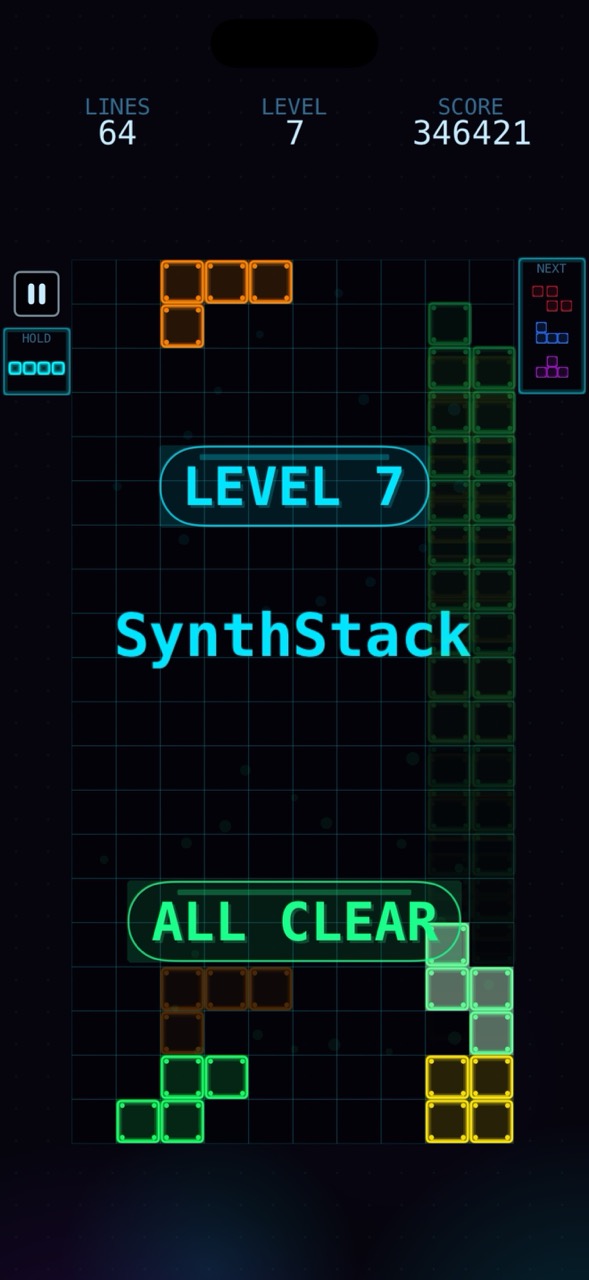 That’s how SynthStack started. A block puzzle game wrapped in neon and synthwave visuals, built with SpriteKit for iOS.